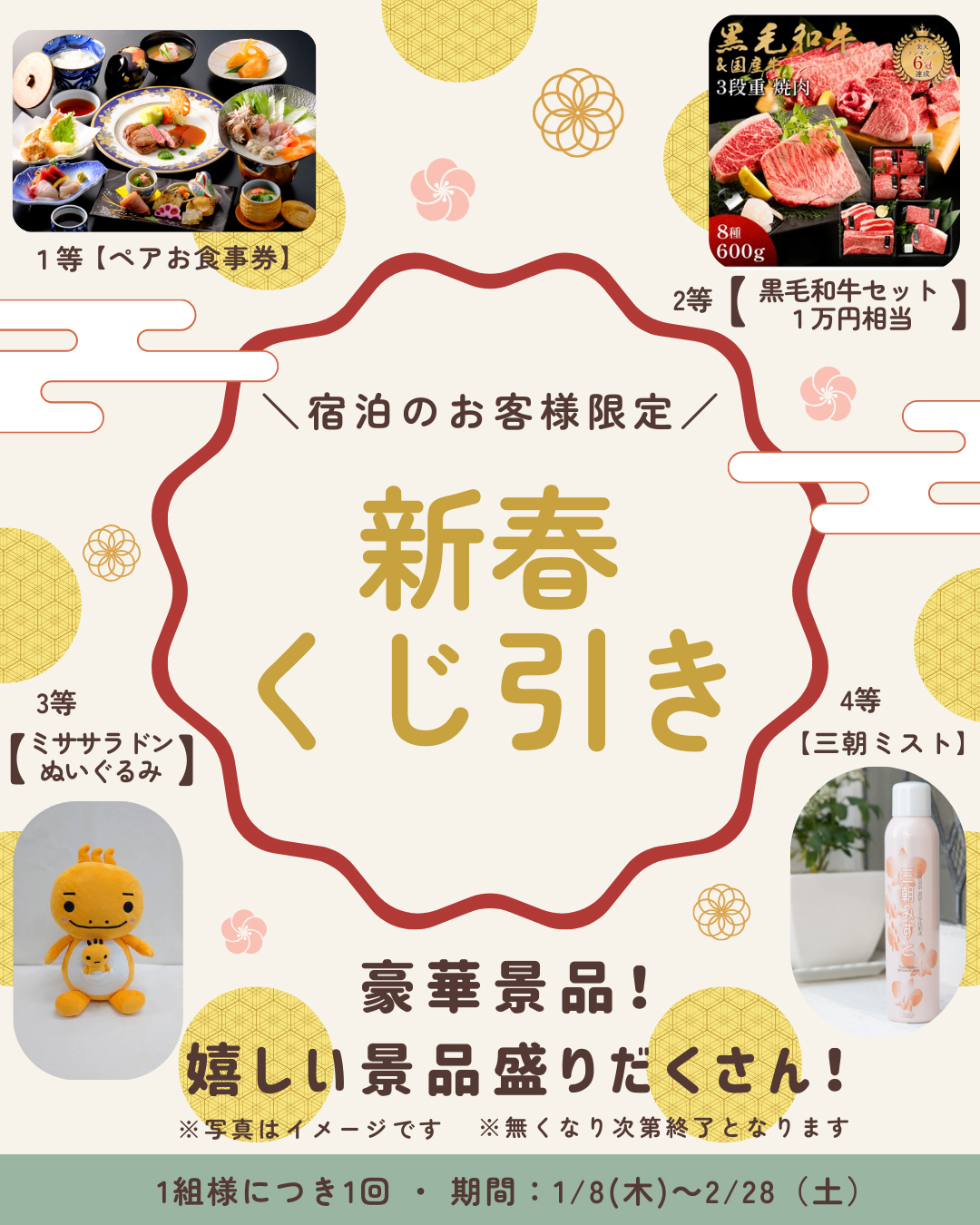【宿泊者限定】運だめし☆彡新春くじ引き!!嬉しい景品盛りだくさん!